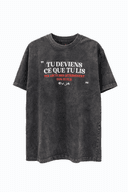 Affirme ton état d’esprit avec ce t-shirt Gris délavé minimaliste et puissant. Message imprimé en contraste élégant : “TU DEVIENS CE QUE TU LIS” “TES LECTURES DÉTERMINENT TON FUTUR”